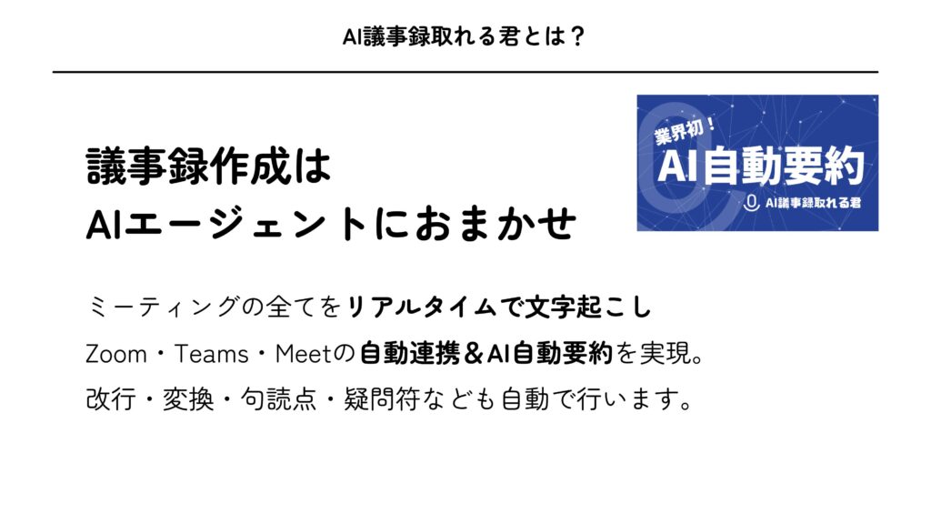 \ 「AI議事録取れる君」詳細資料は /